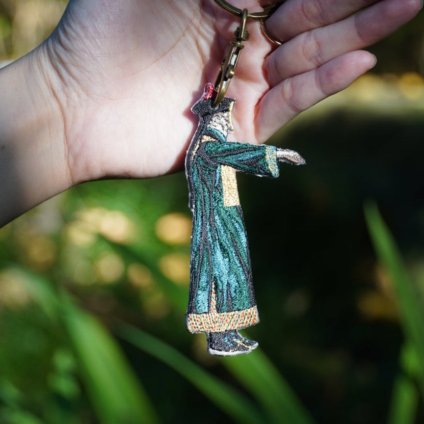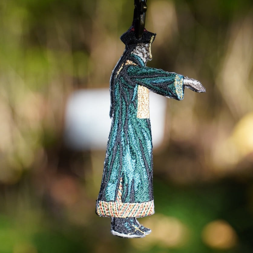 on your bag, keys, or by their side.